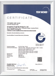 It has obtainedmultiple patents in green and smart energy, complies with national safety standards, and has obtained key international certifications such as ISO 9001(Quality Management System) , ISO 14000(Environmental Management System ) , European Union CE, and China Telecert and more